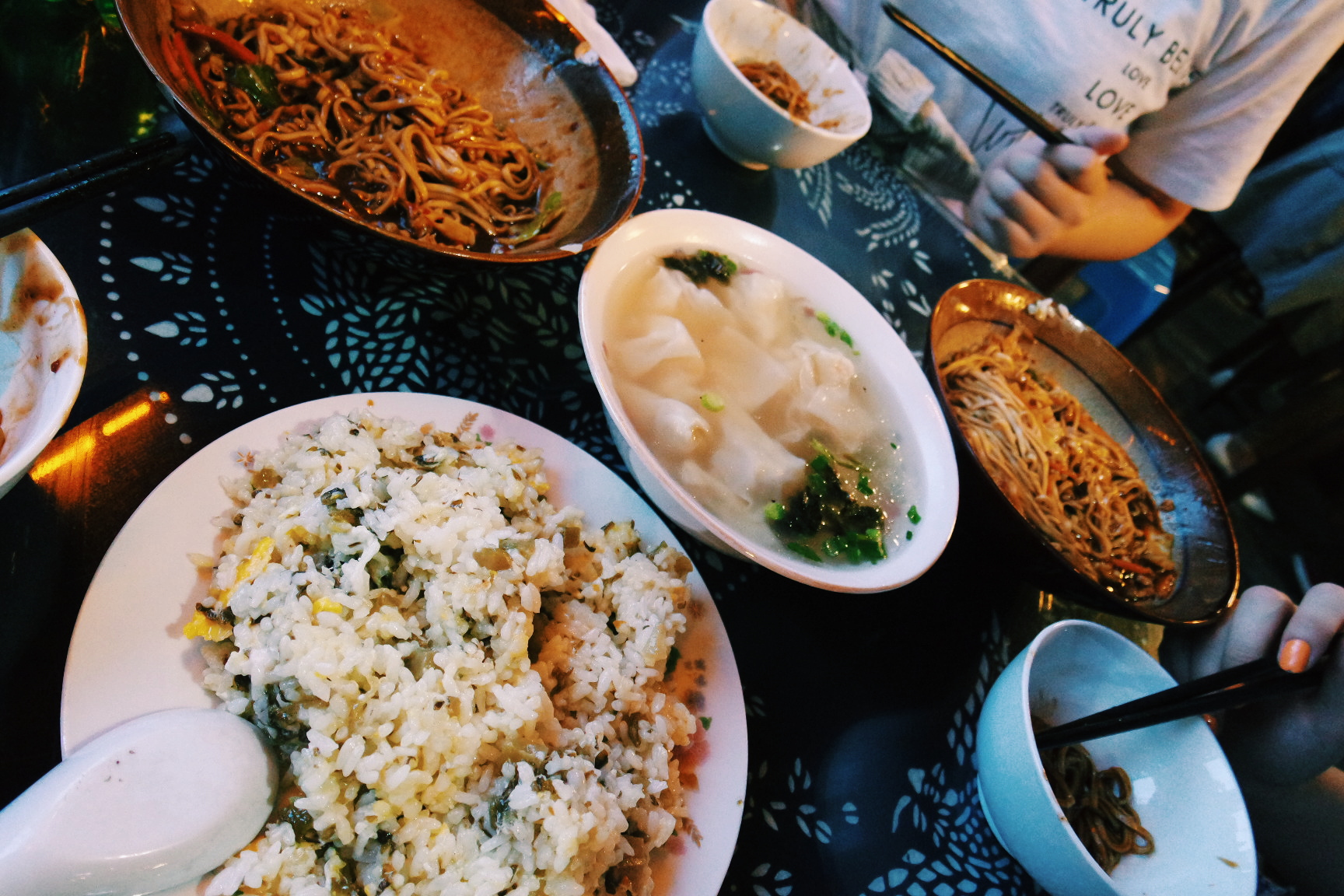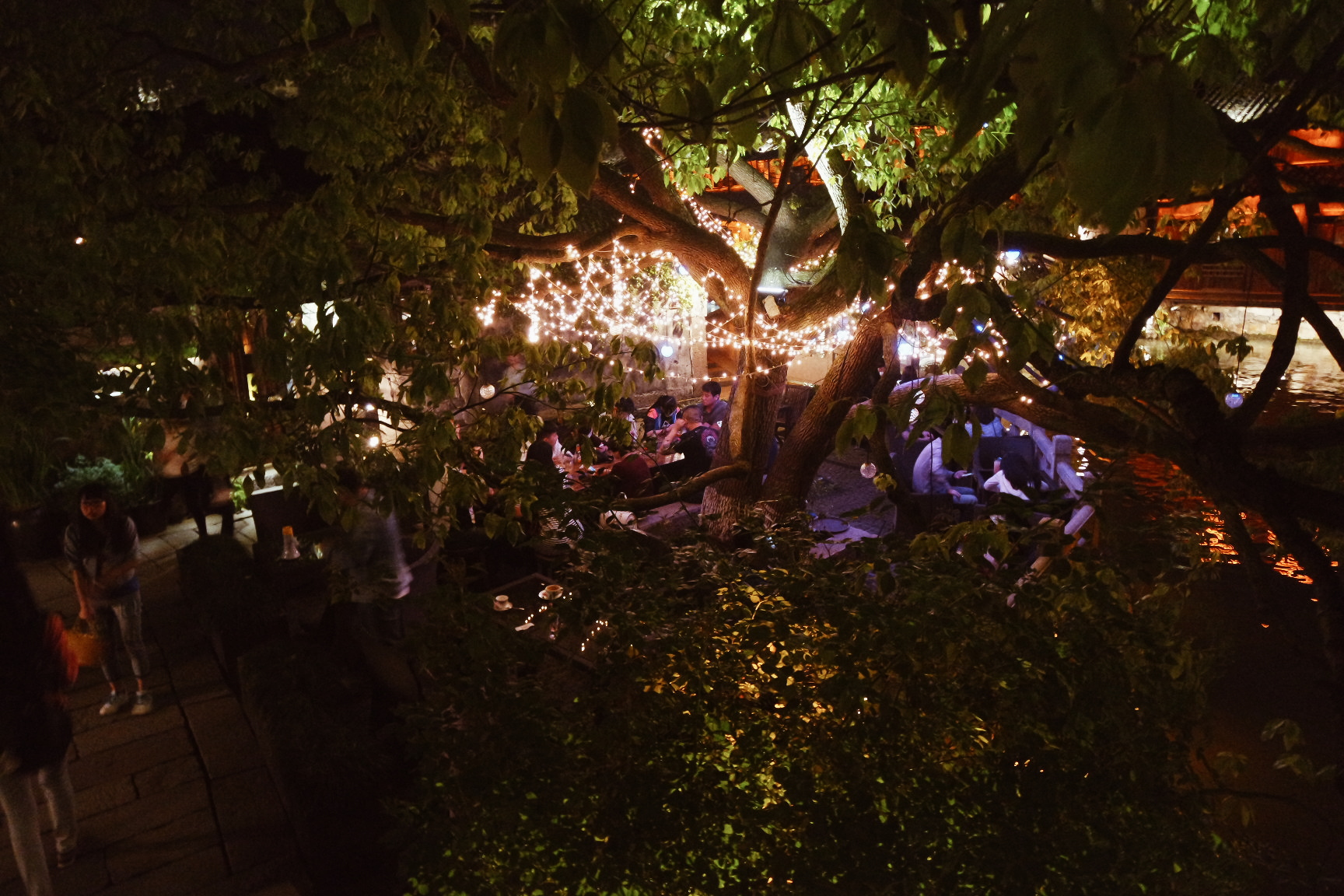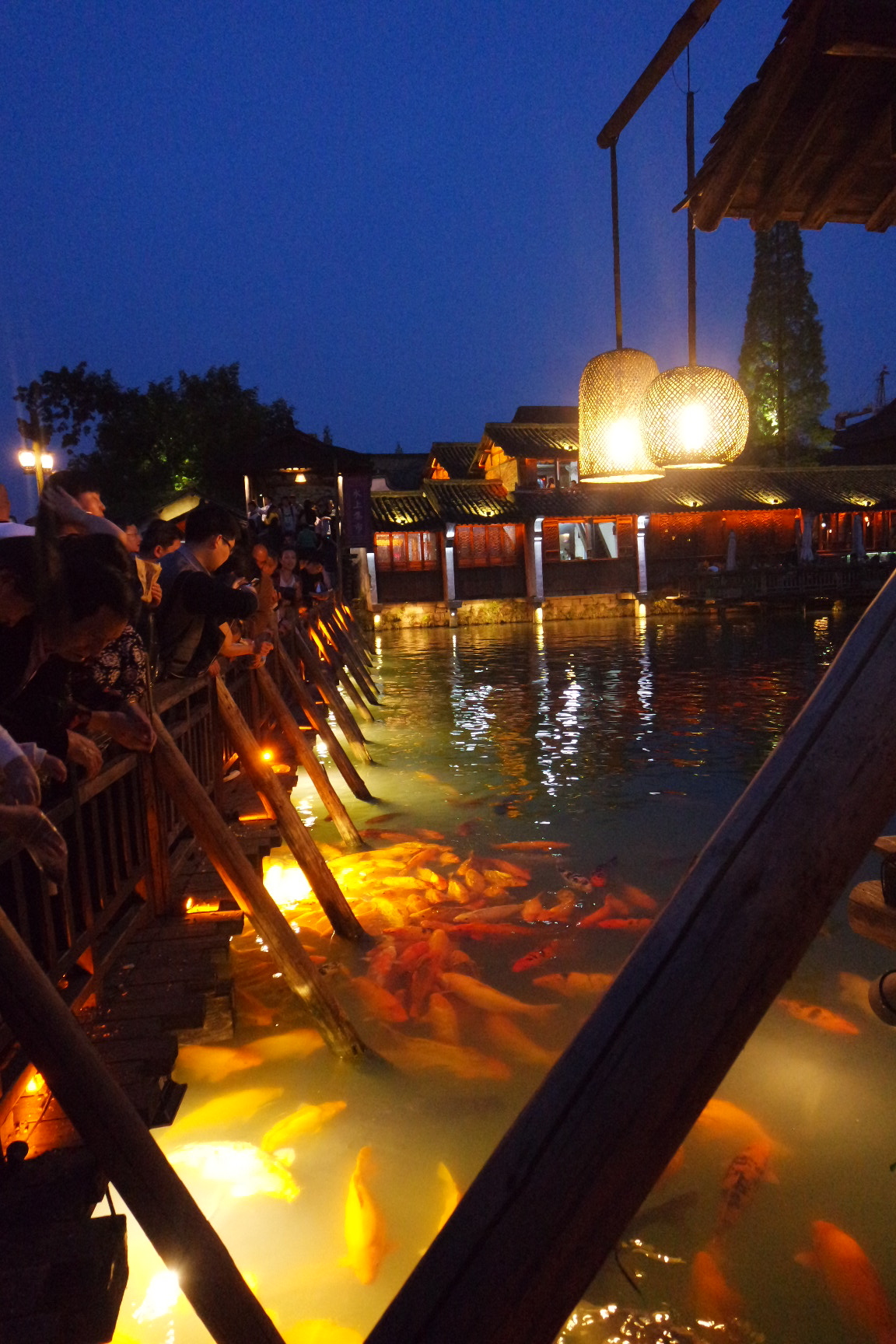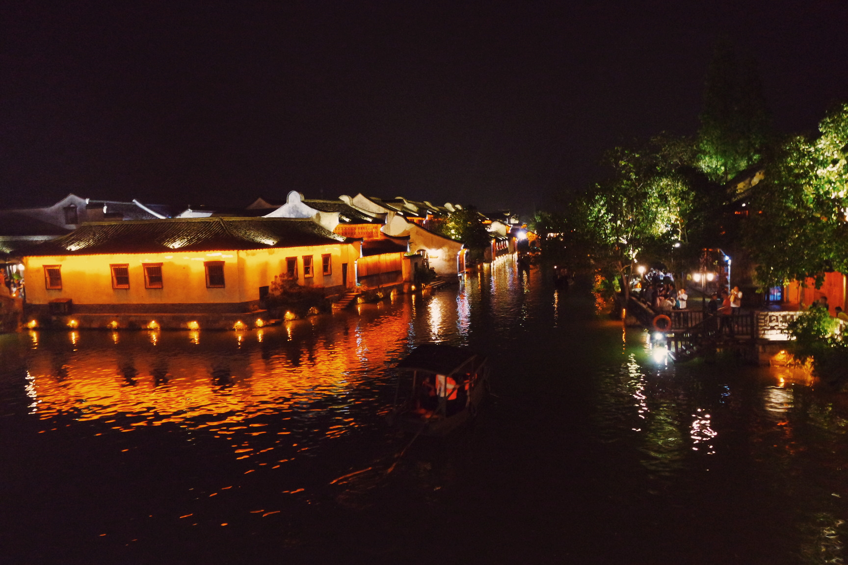 서책은 뗏목과 배의 중간 크기 정도의 배를 타고 둘러볼 수 있다. 물론 유료다. 하지만 무료로 아주 짧은 거리지만 탈수 있는 곳이 있었기에 우린 거기로.ㅎㅎ 서책에 도착해 엄청 분위기 좋아 보이는 레스토랑은 비쌀것 같아서 못가고 나름 저렴한 식당을 갔다. 거기도 운치있었다. 맛도 꽤 괜찮았다.(여행지 내에서 그 정도면.) 날이 어두워지고, 조명이 켜지자 우리의 피로는 싹 달아났다. 너무 아름다웠다. 저녁을 먹은 후 모두들 힘이 나서 앞다퉈 식당에서 나와 구경하기 시작했다. 서책이 동책보다 넓어서 그런지 삭ㄴ이 늦어서 그런지 이유는 알수 없지만 덜 붐볐다.(그렇다고 사람이 없는게 아니다.) 한참을 아름다운 모습에 감탄하며 구경하던 중 적당한 곳에서 단체사진을 한장 박았다. 풍경은 真漂亮(너무 예쁜데)인데 우리들은 완전 难看(못생김)ㅋㅋㅋㅋㅋㅋㅋㅋㅋ