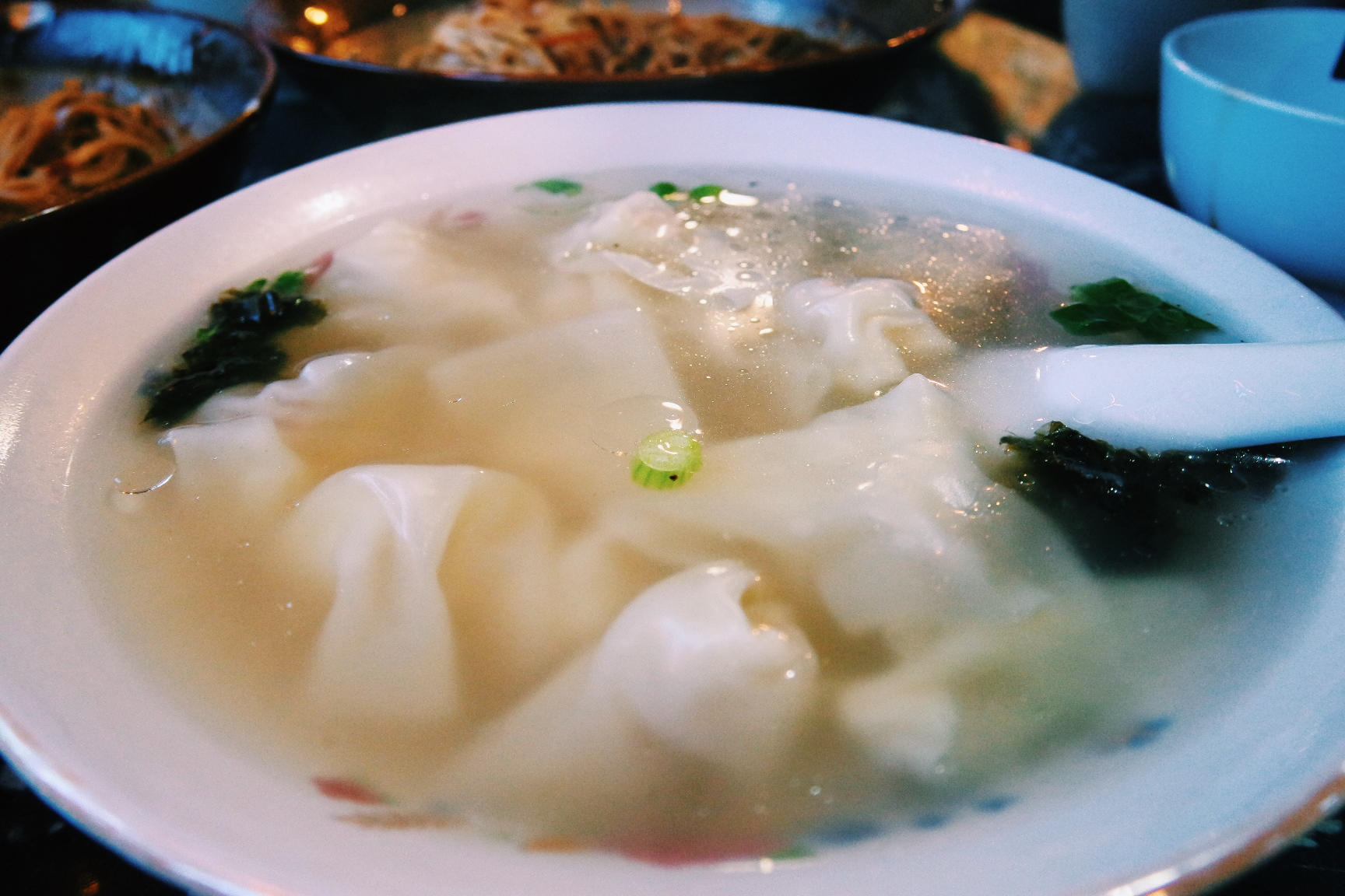 첫 식사, 상당히 많은 음식이 나왔지만 수저통에 써있는 우전 글씨가 예뻐서...