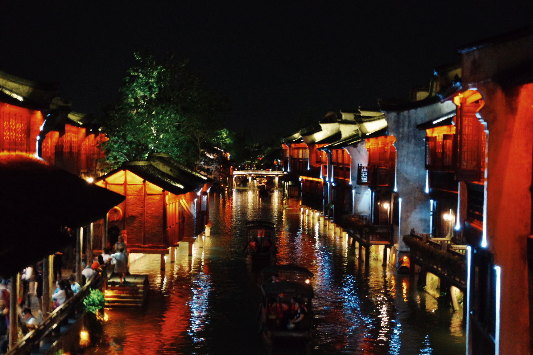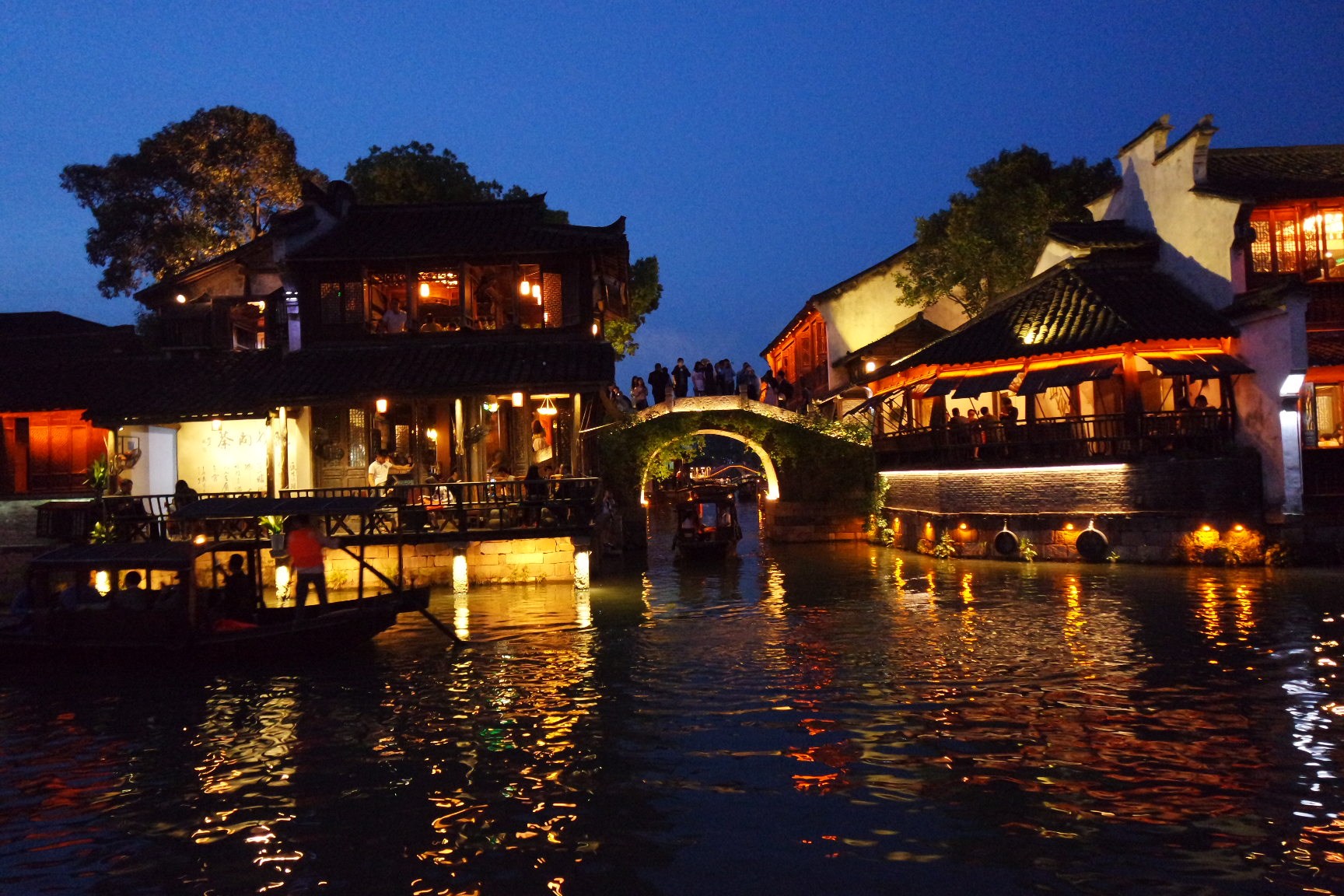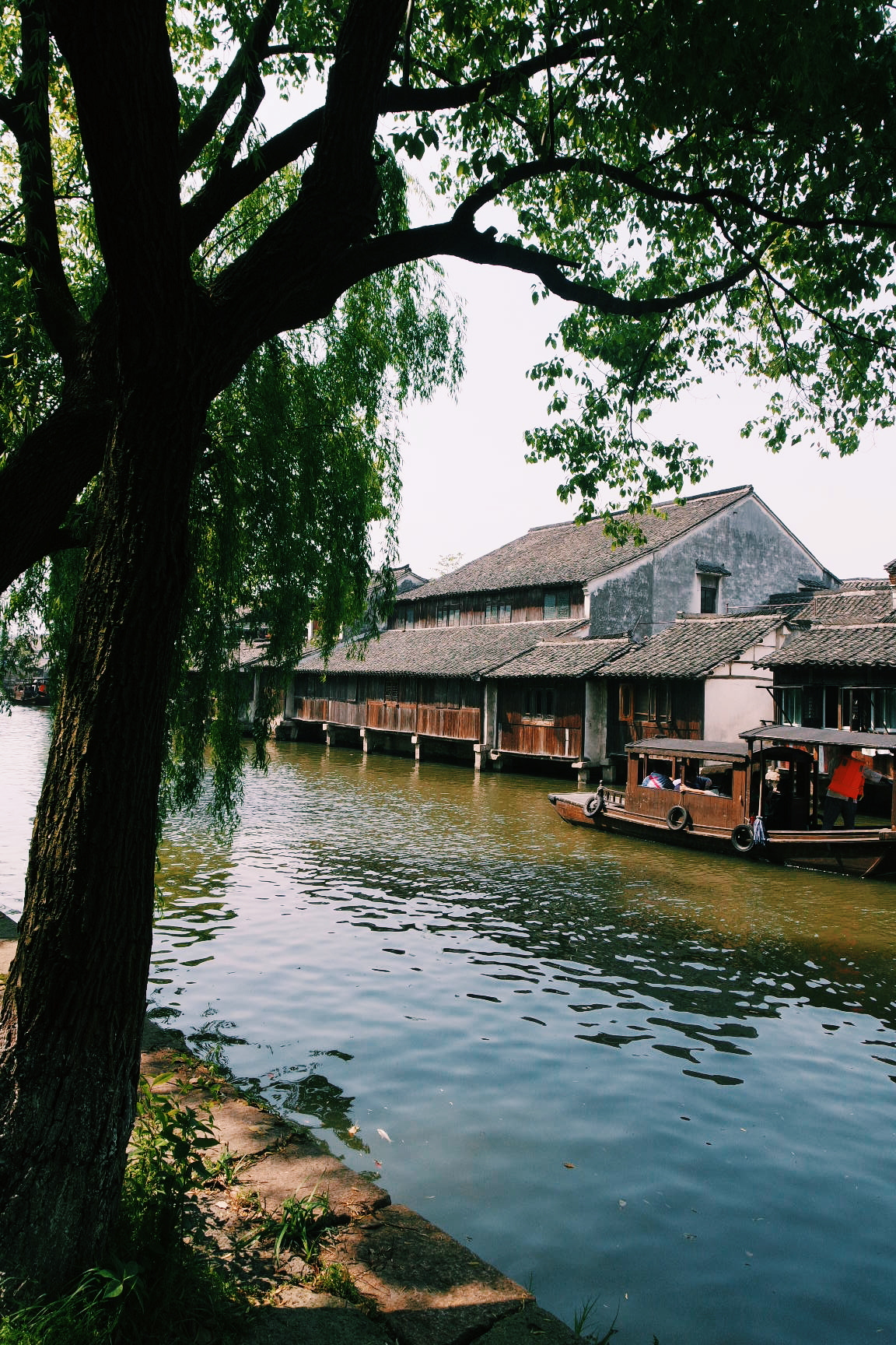 먼저 배를 타고 수향도시 우전의 곳곳을 살펴봅니다.
